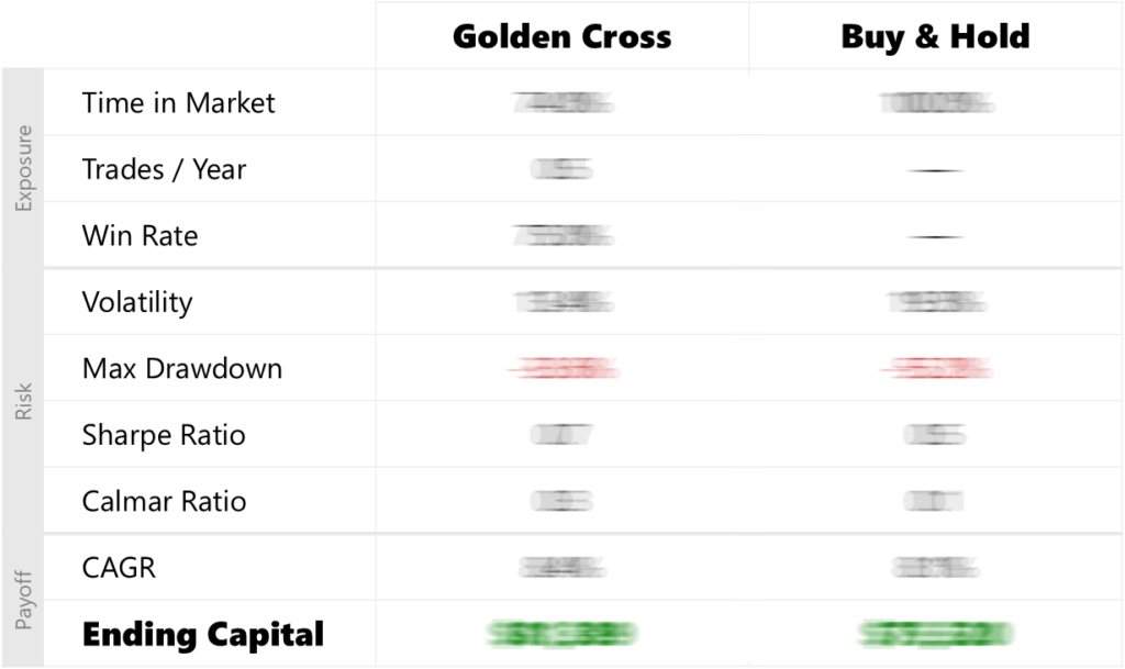 The Golden Cross gets attention because it turns a fuzzy idea into a binary rule: stay fully exposed when the 50-day moving average is above the 200-day moving average, step aside when it falls below. It is one of the few signals that is both widely recognized and easy to backtest, which is why it keeps resurfacing in market commentary.